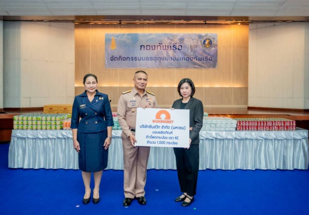 บริษัท ซันสวีท จำกัด (มหาชน) ผู้ผลิตและจำหน่ายข้าวโพดหวานแปรรูปภายใต้แบรนด์สินค้า KC ร่วมกิจกรรมบรรจุถุงยังชีพกองทัพเรือ พร้อมสนับสนุนผลิตภัณฑ์ข้าวโพดหวานบรรจุกระป๋องแบรนด์ KC จำนวน 1,000 กระป๋อง เพื่อช่วยเหลือกลุ่มเปราะบาง ในพื้นที่ อำเภอวัดสิงห์ จังหวัดชัยนาท