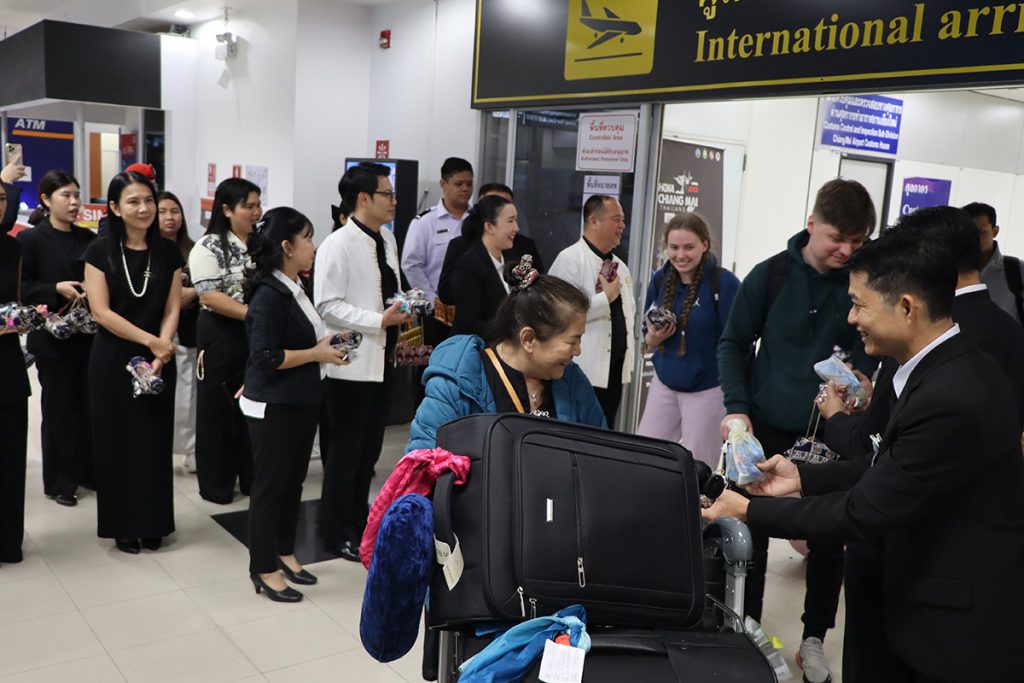 ในโอกาสนี้ นายวีรพงศ์ ฤทธิ์รอด รองผู้ว่าราชการจังหวัดเชียงใหม่ และนายชูวิทย์ ศิริเวชกุล รองผู้ว่าการด้านนโยบายและแผน การท่องเที่ยวแห่งประเทศไทย ได้ร่วมต้อนรับนักท่องเที่ยวอย่างอบอุ่น บริเวณหน้าห้องผู้โดยสารขาเข้าระหว่างประเทศ ท่าอากาศยานเชียงใหม่ (ทชม.) พร้อมทั้งมอบของที่ระลึกเป็นกางเกงช้างล้านนา และพวงกุญแจรูปช้าง ให้แก่นักท่องเที่ยวที่เดินทางมาถึง สร้างความประทับใจและเป็นการส่งเสริมเอกลักษณ์ท้องถิ่นล้านนา