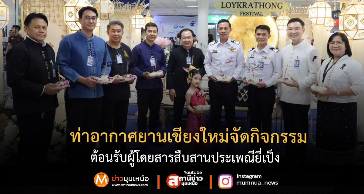 วันที่ 4 พฤศจิกายน 2568 ท่าอากาศยานเชียงใหม่ (ทชม.) จัดกิจกรรมต้อนรับผู้โดยสารสืบสานประเพณียี่เป็ง โดยมี นายการันต์ ธนกุลจีรพัฒน์ ผู้อำนวยการท่าอากาศยานเชียงใหม่ และ นายวิสูตร คำยอด รองผู้อำนวยการท่าอากาศยานเชียงใหม่ (สายปฏิบัติการและบำรุงรักษา) พร้อมด้วยผู้บริหาร พนักงาน และผู้แทนส่วนราชการ ร่วมมอบ กระทงกะลา เป็นของที่ระลึกให้แก่ผู้โดยสารและนักท่องเที่ยว