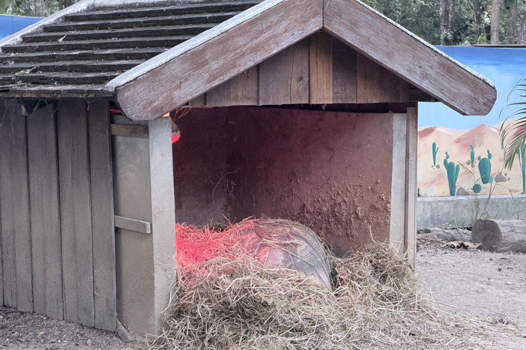 4.จัดทำจุดหลบลมหนาว จัดเตรียมซุ้มหรือบ้านกำบังลมในคอกต่าง ๆ โดยเฉพาะสัตว์ที่ต้องการการดูแลเป็นพิเศษ เช่น เต่าซูลคาตา