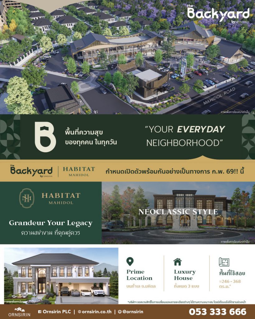 THE FIRST REPLETE OF ORNSIRIN ON MAHIDOL DISTRIC อรสิริน กรุ๊ป ผุดโปรเจคเชื่อมโยงการใช้ชีวิต บน ถ.มหิดล เพียบพร้อมทั้ง THE BACKYARD MAHIDOL คอมมูนิตี้มอลล์ และ HABITAT MAHIDOL โครงการบ้านระดับ A LIST