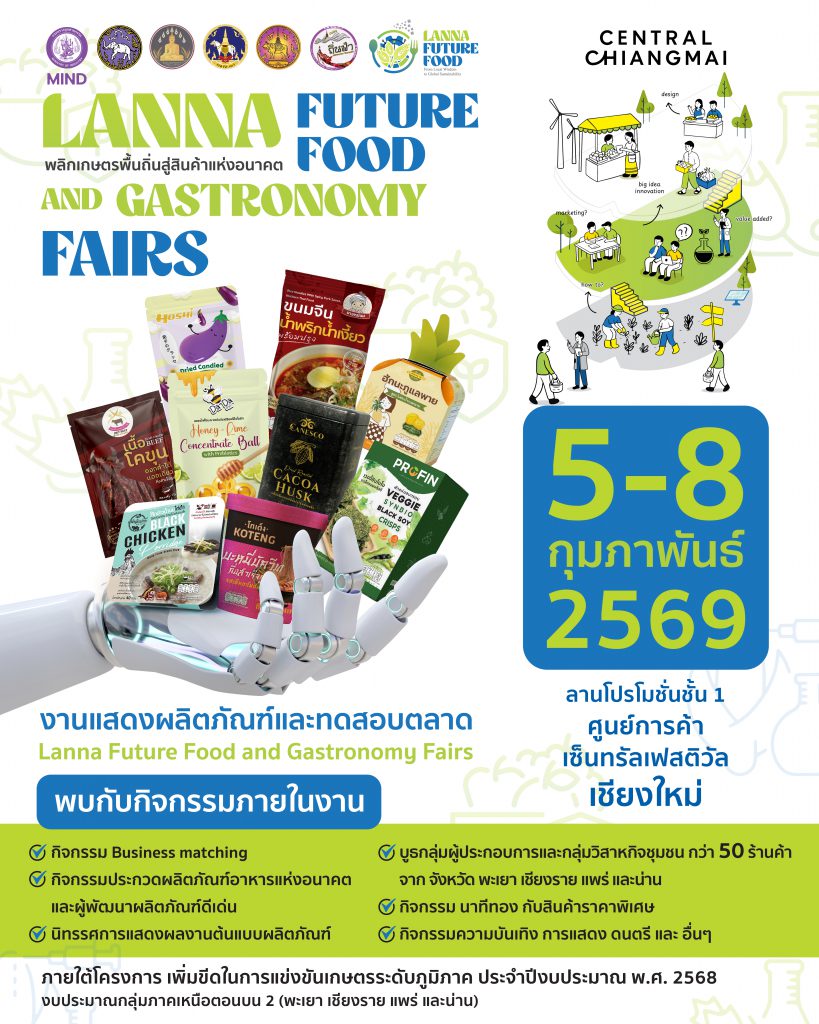 งานแสดงผลิตภัณฑ์และทดสอบตลาดอาหารแห่งอนาคต จากผู้ประกอบการ จ. พะเยา•จ.เชียงราย•จ.แพร่ และ จ.น่าน
