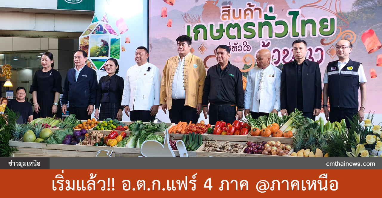 องค์การตลาดเพื่อเกษตรกรจัดงาน “อ.ต.ก.แฟร์ 4 ภาค @ภาคเหนือ” ภายใต้แนวคิด “สินค้าเกษตรทั่วไทย สู่หัวใจล้านนา” ส่งเสริมสินค้าจากเกษตรกร วิสาหกิจชุมชน และผู้ประกอบการจากทั่วประเทศ ระหว่างวันที่ 21 – 25มกราคม พ.ศ. 2569 ณ มีโชคพลาซ่า จังหวัดเชียงใหม่