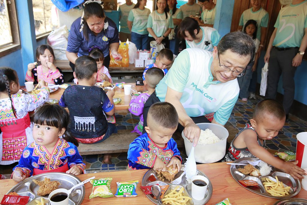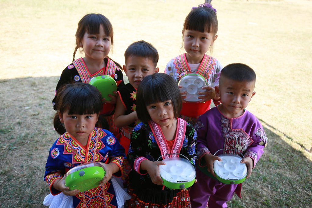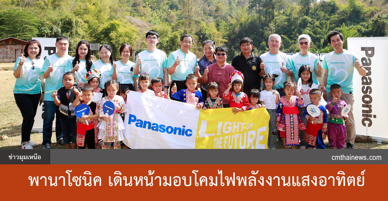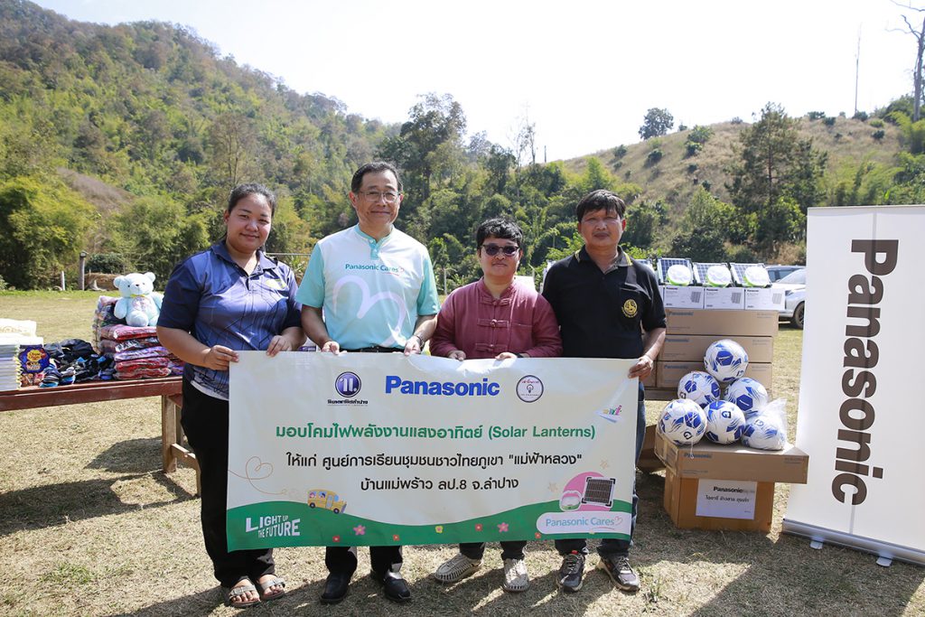 ล่าสุด พานาโซนิคในประเทศไทย ได้เดินหน้าโครงการ “LIGHT UP THE FUTURE” ร่วมกับพันธมิตรคู่ค้าคนสำคัญ ได้แก่ บริษัท นิยมพานิชลำปาง จำกัด และ บริษัท เล่าจิ้นกวง จำกัด ลงพื้นที่มอบ “โคมไฟพลังงานแสงอาทิตย์” (Solar Lanterns) ที่มีแผงโซล่าเซลล์เก็บพลังงานแสงอาทิตย์ มีความปลอดภัยสูงและเป็นมิตรต่อสิ่งแวดล้อม จำนวน 57 ชุด ให้กับ ศูนย์การเรียนรู้ชุมชนชาวไทยภูเขา “แม่ฟ้าหลวง” บ้านแม่พร้าว ลป.8 จังหวัดลำปาง ที่ตั้งอยู่ห่างจากตัวเมืองกว่า 70 กิโลเมตร ในพื้นที่ห่างไกลความเจริญและประสบกับปัญหาการขาดแคลนไฟฟ้า ซึ่งมีครูผู้สอนจำนวน 2 คน ดูแลนักเรียนจำนวน 25 คน ตั้งแต่ระดับศูนย์เด็กเล็กไปจนถึงมัธยมศึกษาตอนปลาย เพื่อให้คุณครูและน้อง ๆ นักเรียน ได้มีแสงสว่างไว้ใช้ยามค่ำคืน ทั้งการอ่านหนังสือ ทำการบ้าน และทำกิจกรรมอื่น ๆ ได้สะดวกและปลอดภัยยิ่งขึ้น พร้อมกันนี้ ได้ร่วมมือจัดทำอาหารกลางวันมื้อพิเศษและมอบสิ่งของเครื่องใช้ที่จำเป็น
