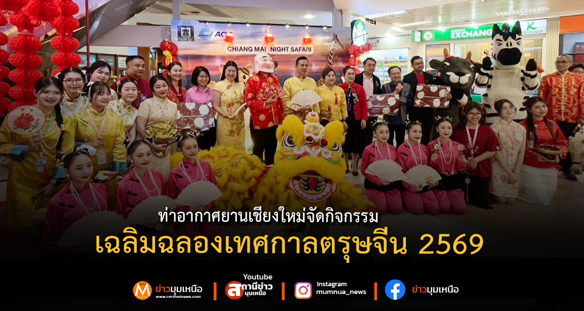 วันที่ 17 กุมภาพันธ์ 2569 ท่าอากาศยานเชียงใหม่ จัดกิจกรรมเฉลิมฉลองเทศกาลตรุษจีน ประจำปี 2569 ภายในอาคารผู้โดยสาร เพื่อสร้างบรรยากาศแห่งความเป็นสิริมงคลและสร้างความประทับใจแก่ผู้โดยสารและนักท่องเที่ยวที่เดินทางมาใช้บริการในช่วงเทศกาล โดยนายการันต์ ธนกุลจีรพัฒน์ ผู้อำนวยการท่าอากาศยานเชียงใหม่ พร้อมด้วยคณะผู้บริหารและพนักงาน ร่วมมอบของที่ระลึกเนื่องในเทศกาลตรุษจีน อาทิ ส้มมงคลซึ่งเป็นสัญลักษณ์แห่งความโชคดีและความมั่งคั่ง ป๋องแป๋ง (Spin Drum) ของเล่นพื้นบ้านไทยที่ได้รับอิทธิพลจากวัฒนธรรมจีน รวมถึงช็อกโกแลตแผ่นทอง ให้แก่ผู้โดยสารและผู้ใช้บริการ